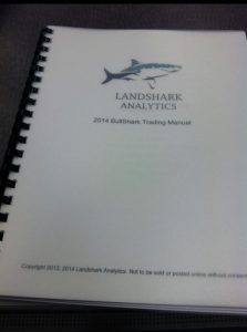 And from there, The first training (which is The Landshark Method today) was called Bullshark Trading and it comprised of a 50+ page hard-copy trading manual 15 video lectures and a Skype group. He then created the SAT (Small Account Tactics) lectures which focused on trading a framework and risk model for options designed specifically for smaller accounts.